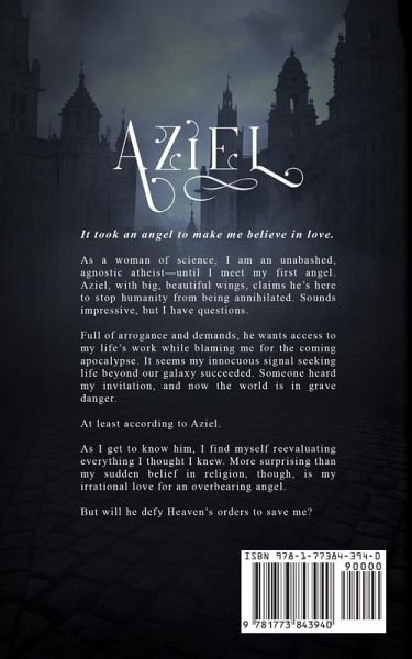 It took an angel to make me believe in love. As a woman of science, I am an unabashed, agnostic atheist-until I meet my first angel. Aziel, with big, beautiful wings, claims he's here to stop humanity from being annihilated. Sounds impressive, but I have questions. Full of arrogance and demands, he wants access to my life's work while blaming me for the coming apocalypse. It seems my innocuous signal seeking life beyond our galaxy succeeded. Someone heard my invitation, and now the world is in grave danger. At least according to Aziel. As I get to know him, I find myself reevaluating everything I thought I knew. More surprising than my sudden belief in religion, though, is my irrational love for an overbearing angel. But will he defy Heaven's orders to save me?