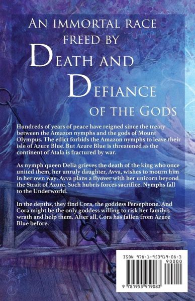 An immortal race freed by death and defiance of the gods. Hundreds of years of peace have reigned since the treaty between the Amazon nymphs and the gods of Mount Olympus. The edict forbids the Amazon nymphs to leave their isle of Azure Blue. But Azure Blue is threatened as the continent of Atala is fractured by war. As nymph queen Delia grieves the death of the king who once united them, her unruly daughter, Avva, wishes to mourn him in her own way. Avva plans a flyover with her unicorn beyond the Strait of Azure. Such hubris forces sacrifice. Nymphs fall to the Underworld. In the depths, they find Cora, the goddess Persephone. And Cora might be the only goddess willing to risk her family's wrath and help them. After all, Cora has fallen from Azure Blue before.