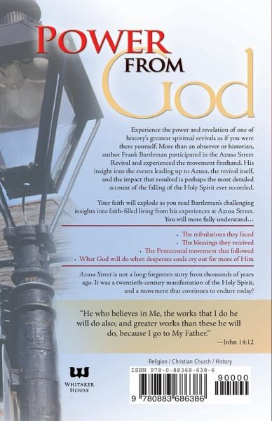 Power from God Your faith will explode as you read Bartleman's challenging insights into faith-filled living from his experiences at Azusa Street. Then you will know how to: * Be an instrument of God's love and healing to others.* Change your life from ordinary to extraordinary.* Conquer fears that have defeated you.* Experience the presence of God for yourself.* Become as effective as the early Christians.Your prayer life will be unbelievably transformed as you experience God's moving in your life."He who believes in Me, the works that I do he will do also; and greater works than these he will do, because I go to My Father." -- John 14:12 NKJV…mehr