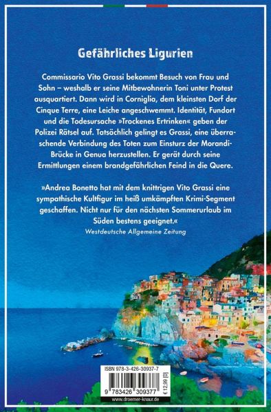 Während Grassi mehr oder weniger erfolgreich versucht, sein Privatleben zu managen, wird im beschaulichen Corniglia - dem kleinsten Dorf der Cinque Terre - eine Leiche angeschwemmt. Identität, Fundort und die Todesursache "Trockenes Ertrinken" geben der Polizei Rätsel auf. Grassi ist überzeugt, dass der junge Mann ermordet wurde. Über eine anonyme Zeugin können er und seine schlagfertige junge Partnerin Marta Ricci eine überraschende Verbindung des Toten zum Einsturz der Morandi-Brücke herstellen, die 2018 ein Arbeiter-Wohnviertel von Genua unter sich begrub. Als Grassi knapp einen weiteren Mord verhindert und dabei selbst in Lebensgefahr gerät, wird ihm klar, dass er mit seinen Ermittlungen einem größeren Feind in die Quere gekommen ist.