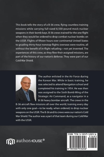 This book tells the story of a B-36 crew, flying countless training missions while carrying full-sized 8,500-pound mock nuclear weapons in their bomb bays. B-36 crews trained for the one flight when they would be ordered to drop combat nuclear bombs on the USSR. Flights of fifteen hours over continental United States to grueling thirty-hour nonstop flights overseas were routine, all without the benefit of in-flight refueling-not yet invented. The experiences of this crew, as they flew their assigned missions, are part of the history of our nation's defense. They were part of our Cold War Shield.