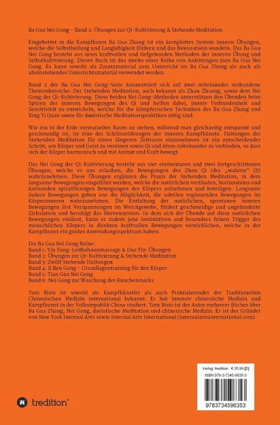 Eingebettet in die Kampfkunst Ba Gua Zhang ist ein komplettes System innerer Übungen, welche die Selbstheilung und Langlebigkeit fördern und das Bewusstsein wandeln. Das Ba Gua Nei Gong besteht aus neun kraftvollen und tiefgehenden Methoden der inneren Übung und Selbstkultivierung. Dieses Buch ist das zweite einer Reihe von Anleitungen zum Ba Gua Nei Gong. Sowohl als begleitendes als auch alleinstehendes Unterrichtsmaterial ist es hilfreich.Band 2 dieser Serie behandelt zwei miteinander verbundene Praktiken: Die Stehende Meditation, Zhan Zhuang, sowie die Qi-Kultivierung. Diese beiden Nei Gong-Methoden unterstützen den Übenden beim Spüren der inneren Bewegungen des Qi und helfen, innere Verbundenheit und Sensitivität zu entwickeln, welche für die kämpferischen Techniken des Ba Gua Zhang und Xing Yi Quan sowie für daoistische Meditationspraktiken nötig sind.Wie ein in der Erde verwurzelter Baum zu stehen, gleichzeitig aber entspannt und geschmeidig zu sein, ist eine der Schlüsselübungen der inneren Kampfkünste. Haltungen der Stehenden Meditation für einen längeren Zeitraum einzunehmen, ist entscheidend, um Körper und Geist sowie Qi und Atem miteinander zu verbinden, damit sich der Körper harmonisch und mit Anmut und Kraft bewegt.Die Qi-Kultivierung besteht aus sechs Übungen, welche helfen, die Bewegungen des Qi wahrzunehmen. Diese Übungen ergänzen die Stehende Meditation durch langsame Bewegungen, welche die natürlichen spiralförmigen Bewegungen auf allen Ebenen des Körpers involvieren. Langsame äußere Bewegungen geben uns die Möglichkeit, die feinen ergänzenden Bewegungen im Körper wahrzunehmen. Das Entfalten natürlicher, spontaner innerer Bewegungen löst Verspannungen, fördert geschmeidige, freie Zirkulation und beruhigt das Nervensystem. Durch diese natürlichen Bewegungen können jene instinktiven und feinen Trigger des Körpers in direkten kraftvollen Bewegungen verwirklicht werden, welche in der Kampfkunst ein großes Anwendungsspektrum haben.