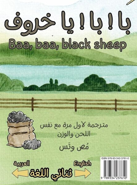 Baa, Baa, Black Sheep ¿¿¿! ¿¿¿! ¿¿¿ ¿¿¿¿¿¿¿! is a captivating bilingual children's book that introduces the beloved English nursery rhyme "Baa, Baa, Black Sheep" to Arabic-speaking children for the first time in a beautifully translated format that preserves its original rhythm and melody. This pioneering adaptation is thoughtfully crafted to maintain the lyrical charm and musicality of the classic rhyme, making it a delightful and educational experience for young readers. Perfect for bilingual families, educators, and language learners, this book bridges cultures and fosters early language development through the magic of rhyme and repetition. With its engaging bilingual text and melodic flow, Baa, Baa, Black Sheep ¿¿¿! ¿¿¿! ¿¿¿ ¿¿¿¿¿¿¿! is a must-have for parents and teachers looking to introduce children to English and Arabic in a fun and memorable way. Discover the joy of bilingual storytelling and spark a lifelong love for language and literature!