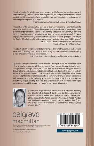 "Preece has written a fascinating account of Germany's past and present struggle to narrativize Baader-Meinhof: is this history or myth, an inspiration or a warning, a story of victims or perpetrators? From a non-German perspective, are Germany's terrorists the only 'good Germans?' From Katharina Blum to the contemporary Krimi, Preece engages with contradictory fictions in their historical context, giving us a history of the Baader-Meinhof novel that is simultaneously an insight into post-'68 Germany." - Sarah Colvin, Director of the Institute for German Studies, University of Birmingham, UK