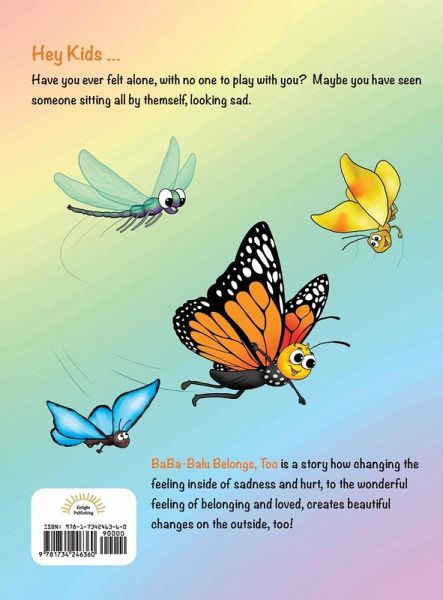 Have you ever felt left out, or that you just did not belong or fit in? Do you know a child that might feel this way? Human beings need the feeling of self-worth to grow and develop into a healthy contributing part of society. BaBa-Balu Belongs, Too is a multiple award winning story in areas including School Issues, LGBT, and STEM (Science, Technology, Engineering, and Math) and is about a monarch caterpillar who doesn't fit in. He feels uncomfortable in his own skin. The story reaches a turning point where he feels loved and accepted. This allows him to become the beautiful butterfly he is…mehr