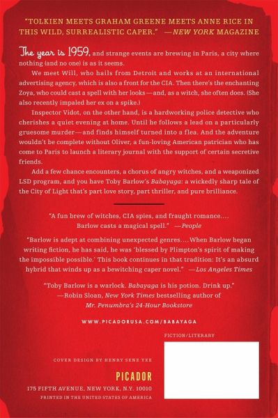 The year is 1959, and strange events are brewing in Paris, a city where nothing (and no one) is as it seems. We meet Will, who hails from Detroit and works at an international advertising agency, which is also a front for the CIA. Then there's the enchanting Zoya, who could cast a spell with her looks-and, as a witch, she often does (she also recently impaled her ex on a spike). Inspector Vidot, on the other hand, is a hardworking police detective who cherishes a quiet evening at home. Until he follows a lead on a particularly gruesome murder-and finds himself turned into a flea. And the adventure wouldn't be complete without Oliver, a fun-loving American patrician who has come to Paris to launch a literary journal with the support of certain secretive friends. Add a few chance encounters, a chorus of angry witches, and a weaponized LSD program, and you have Toby Barlow's Babayaga: a wickedly sharp tale of the City of Light that's part love story, part thriller, and pure brilliance.