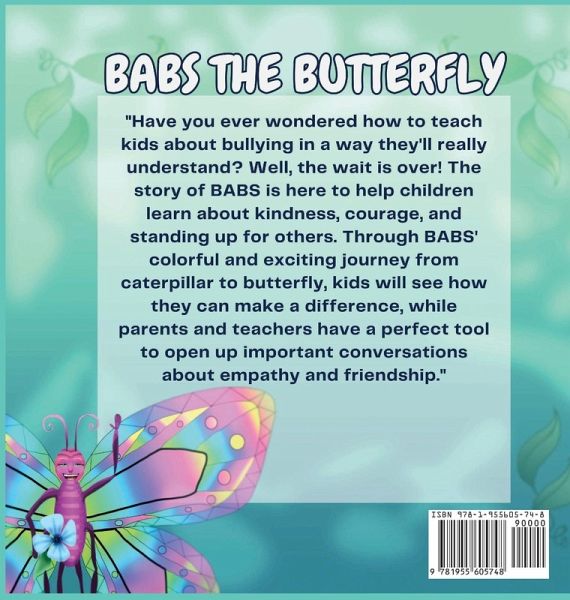 Discover the Magic of Kindness with Babs the Butterfly: A Tale of Kindness and Courage Have you ever struggled to find the perfect way to teach kids about bullying? Imagine a world where your child or student not only understands the importance of kindness but feels empowered to stand up for others. That world is here, and it begins with Babs the Butterfly. This beautifully illustrated children's book by Vernita Stevens, with captivating artwork by Stephen Lursen, takes young readers on a colorful adventure through Possibilities Paradise. Along the way, Babs the Butterfly shows how courage and compassion can change lives. Why "Babs the Butterfly" is a Must-Have:A Story that Speaks to the Heart: Follow Babs as she encounters friends who need her help and stands up to bullying with bravery and kindness. This relatable and inspiring tale will leave kids feeling confident in their ability to make a difference. A Tool for Parents and Teachers: Babs the Butterfly isn't just a story-it's a doorway to meaningful conversations about empathy, friendship, and standing up for what's right. Use this book as a springboard to teach life-changing lessons in a way kids will truly understand. Bright, Engaging Illustrations: The vibrant artwork by Stephen Lursen captures the magic of Babs' world, keeping children engaged and inspired. Every page is a visual feast that brings the story to life. Bring Babs the Butterfly Into Your Home or Classroom Today! Give the children in your life the gift of a story they'll treasure and lessons that will last a lifetime. Whether you're a parent looking for a meaningful bedtime read or a teacher seeking a classroom tool to promote empathy, Babs the Butterfly is the perfect choice. Order Your Copy Now and Let the Journey Begin!