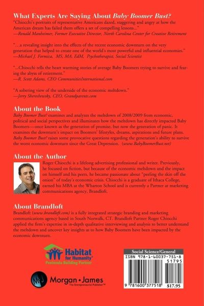 Baby Boomer Bust? examines and analyzes the meltdown of 2008/2009 from economic, political and social perspectives and illuminates how the meltdown has directly impacted Baby Boomers -- once known as the generation of promise, but now the generation of panic. It examines the downturn’s impact on Boomers’ lifestyles, dreams, aspirations and future plans. Baby Boomer Bust? raises some provocative questions regarding the generation’s ability to survive the worst economic downturn since the Great Depression.