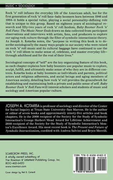 Based on 18 years of sociological research and 52 years of rock 'n' roll fandom, Baby Boomer Rock 'n' Roll Fans: The Music Never Ends draws on data collected from participant observations and interviews with artists, fans, and producers to explore our aging rock culture through the filter of symbolic interactionist theory.