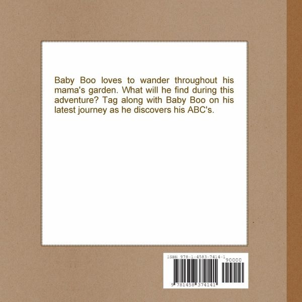 Baby Boo is wandering through his mama's garden again. What will he find along the way? His ABC's. Join Baby Boo in this latest adventure and see what he discovers.