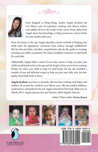 Author Angela Jacobsen has over fifteen years of experience working with infants, babies, and toddlers all over the world. In her newest book, Baby Food, Angela shares her knowledge to help you become a better feeder for your healthy little eater. From the breast to the cup, Angela describes various methods of helping your child make the appropriate transitions from infancy through toddlerhood. She has also provided a detailed, comprehensive day-by-day guide to weaning, ensuring your ability to promote the easiest, healthiest transition to solid foods for your baby. Additionally, Angela offers a series of seven-day menus to help you plan your child's meals based on his or her age and the length of time you've been weaning. Finally, for when your child is ready for solid foods, she has also included a number of easy and delicious recipes to help you give your baby only the best: quality food made fresh at home.
