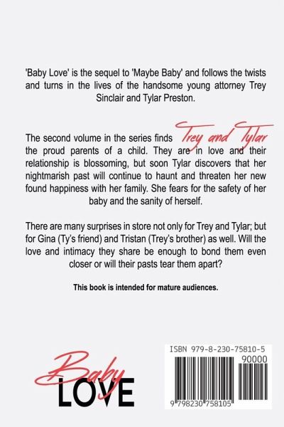 Think "pink" Mr. Sinclair! There's a new girl in your orbit! 'Baby Love' is the second installment in the 'Baby Series' and finds Trey Sinclair and Tylar Preston, his fiancee, new parents to an adorable baby girl! But as their wedding day approaches, Tylar is once again haunted by recurring nightmares that leave her fearful for the safety of her baby. She struggles to unravel her past with the help of a psychologist at Trey's insistence. Together they delve back into Tylar's childhood which opens the door allowing her to secure her future happiness. All is not without cost and there are plenty of surprises along the way. Their journey together is often rocky with unexpected twists and turns along the way; their passion is relentless. They give each other strength during the difficulties they encounter with friends and family in this continuing story of their love and commitment. ADULT CONTENT. 18+ (Previously released as "These Dreams.")