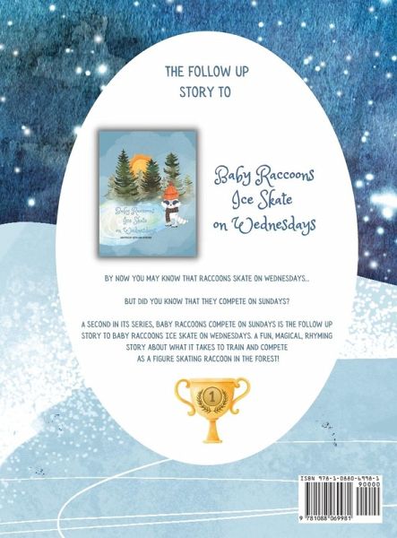 By now you may know that raccoons skate on Wednesdays...but did you know that they compete on Sundays? A second in its series, Baby Raccoons Compete on Sundays is the follow up story to Baby Raccoons Ice Skate on Wednesdays. A fun, magical, rhyming story about what it takes to train and compete as a figure skating raccoon in the forest!