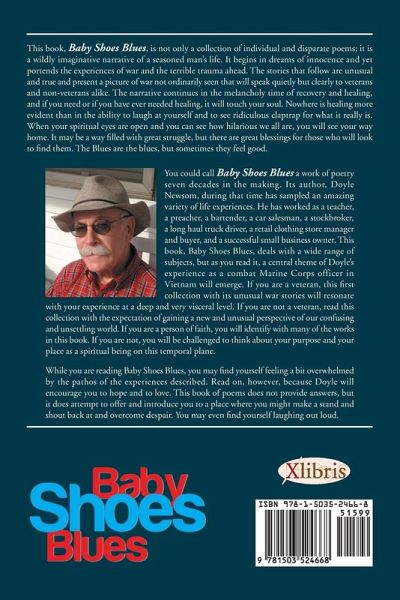You could call Baby Shoes Blues a work of poetry seven decades in the making. Its author, Doyle Newsom, during that time has sampled an amazing variety of life experiences. He has worked as a teacher, a preacher, a bartender, a car salesman, a stockbroker, a long haul truck driver, a retail clothing store manager and buyer, and a successful small business owner. This book, Baby Shoes Blues, deals with a wide range of subjects, but as you read it, a central theme of Doyle's experience as a combat Marine Corps officer in Vietnam will emerge. If you are a veteran, this first collection with its unusual war stories will resonate with your experience at a deep and very visceral level. If you are not a veteran, read this collection with the expectation of gaining a new and unusual perspective of our confusing and unsettling world. If you are a person of faith, you will identify with many of the works in this book. If you are not, you will be challenged to think about your purpose and your place as a spiritual being on this temporal plane. While you are reading Baby Shoes Blues, you may find yourself feeling a bit overwhelmed by the pathos of the experiences described. Read on, however, because Doyle will encourage you to hope and to love. This book of poems does not providing answers, but it does attempt to offer and introduce you to a place where you might make a stand and shout back at and overcome despair. You may even find yourself laughing out loud.
