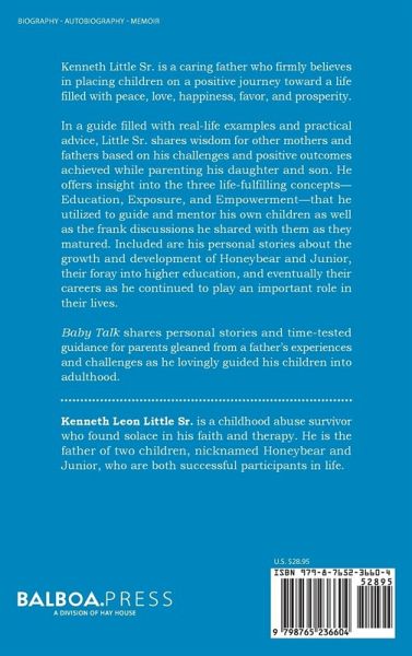 Kenneth Little Sr. is a caring father who firmly believes in placing children on a positive journey toward a life filled with peace, love, happiness, favor, and prosperity. In a guide filled with real-life examples and practical advice, Little Sr. shares wisdom for other mothers and fathers based on his challenges and positive outcomes achieved while parenting his daughter and son. He offers insight into the three life-fulfilling concepts-Education, Exposure, and Empowerment-that he utilized to guide and mentor his own children as well as the frank discussions he shared with them as they matured. Included are his personal stories about the growth and development of Honeybear and Junior, their foray into higher education, and eventually their careers as he continued to play an important role in their lives. Baby Talk shares personal stories and time-tested guidance for parents gleaned from a father's experiences and challenges as he lovingly guided his children into adulthood.