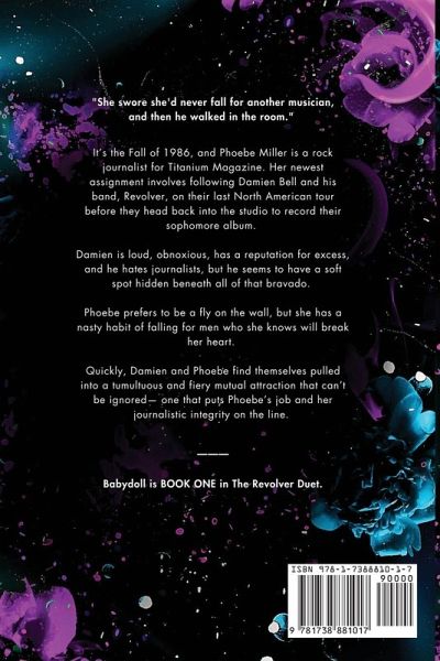 It's the Fall of 1986, and Phoebe Miller is a rock journalist for Titanium Magazine. Her newest assignment involves following Damien Bell and his band, Revolver, on their last North American tour before they head back into the studio to record their sophomore album. Damien is loud, obnoxious, has a reputation for excess, and he hates journalists, but he seems to have a soft spot hidden beneath all of that bravado. Phoebe prefers to be a fly on the wall, but she has a nasty habit of falling for men who she knows will break her heart. Quickly, Damien and Phoebe find themselves pulled into a tumultuous and fiery mutual attraction that can't be ignored- one that puts Phoebe's job and her journalistic integrity on the line. Babydoll is BOOK ONE in The Revolver Duet.