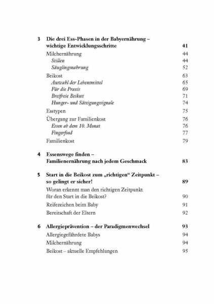 "Welche ist die ideale und gesunde Ernährung für unser Kind?" Diese Frage wird in jeder Familie individuell und häufig auch sehr emotional diskutiert. Je unsicherer Eltern beim Thema Ernährung sind, umso schwieriger gestaltet sich das Essenlernen für das Baby. Aktuell verändern ökologische, medizinische und kulturelle Einflüsse die Babyernährung. Stand bei der Beratung bislang die Vermittlung von Wissen im Vordergrund, brauchen Eltern heute vermehrt Hilfe, um sich inmitten der Informationsflut zu orientieren. In diesem Buch stellt die Autorin aktuelle Erkenntnisse und Hintergründe dar, wobei wesentliche Informationen bewusst allgemeinverständlich aufbereitet sind. Zusätzlich bietet das von ihr entwickelte Kurskonzept "Beikosteinführung" eine praxisorientierte Unterstützung. Vom Stillen über vegetarische, vegane, breifreie bis hin zur traditionellen Beikost kann für jedes Baby das Richtige gefunden werden. So wird ein entwicklungsphysiologisch förderliches und freudiges Essenlernen möglich.In diesem Buch stellt die Autorin aktuelle Erkenntnisse und Hintergründe dar, wobei wesentliche Informationen bewusst allgemeinverständlich aufbereitet sind. Zusätzlich bietet das von ihr entwickelte Kurskonzept "Beikosteinführung" eine praxisorientierte Unterstützung. Vom Stillen über vegetarische, vegane, breifreie bis hin zur traditionellen Beikost kann für jedes Baby das Richtige gefunden werden. So wird ein entwicklungsphysiologisch förderliches und freudiges Essenlernen möglich.