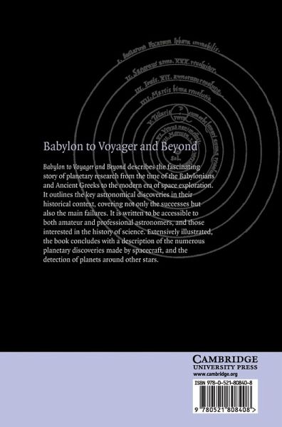 Babylon to Voyager and Beyond covers planetary research from the time of the Babylonians and Ancient Greeks through those of Kepler, Galileo and Newton to the modern era of space exploration. It outlines the key observational discoveries and theoretical developments in their historical context, covering not only the numerous successes but also the main failures. Planetary astronomy has come a long way since the Babylonians used their extensive numerical skills to predict the positions of the moon and planets. That progress is the story of this book, ending, as it does, with the considerable discoveries of the space age, and the discoveries of planets around other stars. This account will appeal to both amateur and professional astronomers, as well as those with an interest in the history of science.