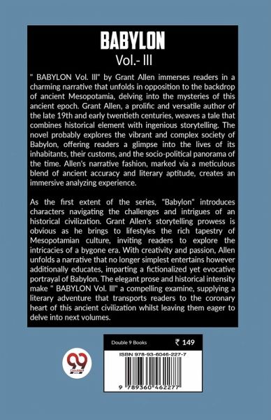 " BABYLON Vol. lll" by Grant Allen immerses readers in a charming narrative that unfolds in opposition to the backdrop of ancient Mesopotamia, delving into the mysteries of this ancient epoch. Grant Allen, a prolific and versatile author of the late 19th and early twentieth centuries, weaves a tale that combines historical element with ingenious storytelling. The novel probably explores the vibrant and complex society of Babylon, offering readers a glimpse into the lives of its inhabitants, their customs, and the socio-political panorama of the time. Allen's narrative fashion, marked via a…mehr