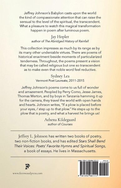 The poems in Jeffrey L. Johnson's collection, Babylon, trace paths we travel and describe places we occupy. These poems explore aspects of our perceptions of place.