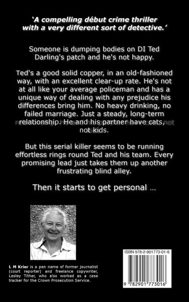 Retired journalist, freelance copywriter and copy editor Lesley Tither writes writes crime fiction, the Ted Darling Crime Series, under the name L M Krier.The crime books are set in Lesley's home-town, Stockport, on the edge of Greater Manchester. Lesley is a former journalist, working as both a criminal court and coroner's court reporter. She also worked as a case tracker for the Crown Prosecution Service, and for a firm investigating irregularities in offshore finance. Her other jobs have included owning and running a holiday riding centre and acting as a 'charity mugger', lying in wait to sign up shoppers for a wildlife charity.She secured her first major writing contract at the age of sixteen when she sold a television piece to a Hollywood production company, for what seemed at the time to be a fortune. Her newspaper editor father claimed it was more than he had ever been paid for a single piece of writing.Her interests centre around nature and wildlife and encompass dogs, wild camping and organic gardening. She lives in the Auvergne region of Central France and holds dual French/British nationality. Her current dogs are two rescued border collies.