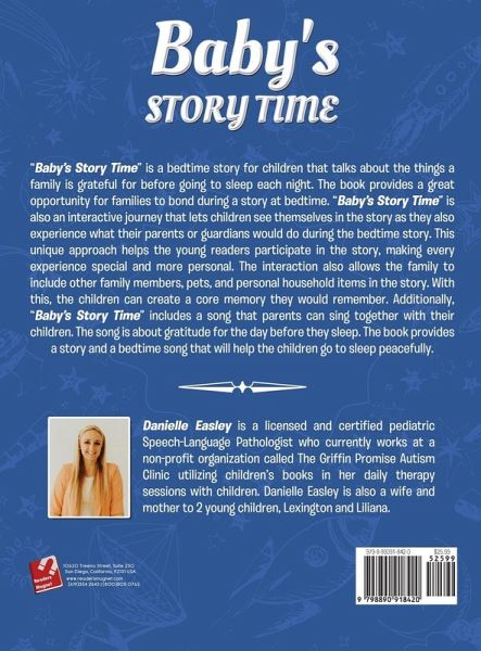 Danielle Easley is a licensed and certified pediatric Speech-Language Pathologist who currently works at a non-profit organization called The Griffin Promise Autism Clinic utilizing children's books in her daily therapy sessions with children. Danielle Easley is also a wife and mother to 2 young children, Lexington and Liliana.