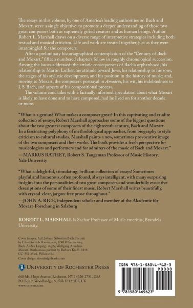 Prologue: The Century of Bach and Mozart as a Music-Historical Epoch: A Different Argument for the Proposition Young Man Bach: Toward a Twenty-First-Century Bach Biography The Notebooks for Wilhelm Friedemann and Anna Magdalena Bach: Some Biographical Lessons Bach and Luther Redeeming the St. John Passion--and J. S. Bach Bach's Keyboard Music The Minimalist and Traditionalist Approaches to Performing Bach's Choral Music: Some Further Thoughts Truth and Beauty: J. S. Bach at the Crossroads of Cultural History Bach at Mid-Life: The Christmas Oratorio and the Search for New Paths Bach at the Boundaries of Music History: Preliminary Reflections on the B-Minor Mass and the Late-Style Paradigm Father and Sons: Confronting a Uniquely Daunting Paternal Legacy Johann Christian Bach and Eros Bach and Mozart: Styles of Musical Genius Mozart and Amadeus Bach and Mozart's Artistic Maturity Mozart's Unfinished: Some Lessons of the Fragments Epilogue (ossia Postmortem). Had Mozart Lived Longer: Some Cautious (and Incautious) Speculations Bibliography Notes