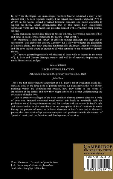 Dr Tatlow's painstaking research will fascinate all those with an interest in the music of J. S. Bach and German Baroque culture, and will be of particular importance for music historians and analysts.