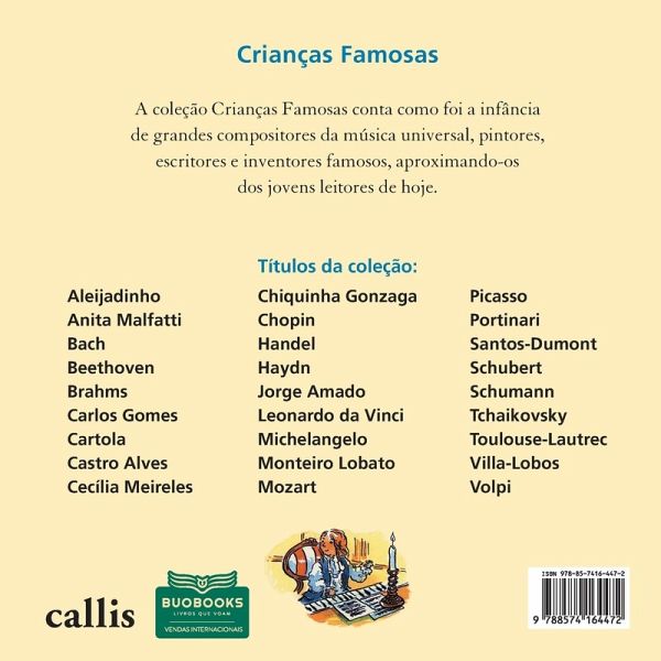 Johann Sebastian Bach nasceu na Alemanha em 31 de março 1685, no seio de uma família de músicos. Após a morte de seus pais, foi viver e estudar com o irmão, Christophe, dezesseis anos mais velho que ele, então organista de Ohrdruf, cidade onde viviam. Ao lado do irmão, Bach aprendeu a tocar e a compor. Em 1703, Bach conseguiu o posto de organista em Arnstadt, graças ao seu talento precoce. Esta obra apresenta uma parte encantadora da infância de Bach, conhecido como o pai da música e um dos mais importantes compositores da história da música ocidental.
