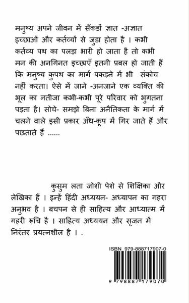 manushy apane jeevan mein sainkadon gyaat -agyaat ichchhaon aur kartavyon se juda hota hai . kabhee kartavy path ka palada bhaaree ho jaata hai to kabhee man kee anaginat ichchhaen itanee prabal ho jaatee hain ki manushy kupath ka maarg pakadane mein bhee sankoch nahin karata. aise mein jaane -anajaane ek vyakti kee bhool ka nateeja kabhee-kabhee poore parivaar ko bhugatana padata hai. soche- samajhe bina anaitikata ke maarg mein chalane vaale isee prakaar andh-koop mein gir jaate hain aur pachhataate