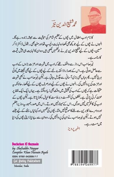 This book "Bachchon Ki Nazmein" contains famous Urdu poet Mohammed Shafiuddin Nayyar's best selected poems... besides poems, He also wrote lot of stories for kids...He was specialzed telling stories in poetic form... Nayyar never cared about fame and honor. He solely wrote for children, and children alone. It is indeed a fact that creating children's literature requires more time and effort. Each word must be carefully crafted, and the placement and selection of words must be thoughtfully considered.