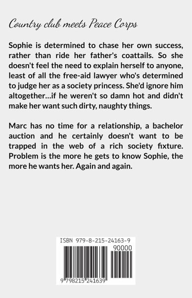 Country club meets Peace Corps Sophia Kennedy is determined to chase her own success, rather than ride her father's coattails. She's devoted herself to Books and Brew, the business she owns with her three best friends. She doesn't feel the need to explain herself to anyone, least of all the free-aid lawyer who's determined to judge her as a society princess. She'd ignore him altogether…if it were up to her mind. But nooooo. Her body just has to have its say—and it's using words like "gorgeous", "hot" and "sexy". Soon, annoyance turns to attraction, verbal sparring to physical satisfaction as the couple is drawn together by a common cause. Marc Garrett has no time for a relationship. And he certainly doesn't want a rich society fixture, though the damning evidence below his belt suggests otherwise. The more he comes to know his hardworking princess, the more he wants her, again and again. Marc's falling hard, but after holding Sophie's wealth against her, how will she react when she learns of his own rather prosperous roots?