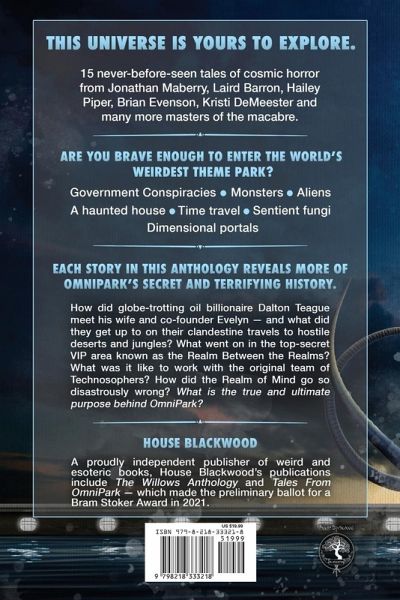 15 never-before-seen tales of cosmic horror from Jonathan Maberry, Laird Barron, Hailey Piper, Brian Evenson, Kristi DeMeester and many more masters of the macabre. Are you brave enough to enter the world's weirdest theme park? Each story in this anthology reveals more of OmniPark's secret and terrifying history. How did globe-trotting oil billionaire Dalton Teague meet his wife and co-founder Evelyn ¿- and what did they get up to on their clandestine travels to hostile deserts and jungles? What went on in the top-secret VIP area known as the Realm Between the Realms? What was it like to work with the original team of Technosophers? How did the Realm of Mind go so disastrously wrong? What is the true and ultimate purpose behind OmniPark?