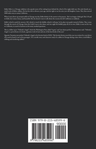 When Quentin Tarantino was asked to pick his favorite read, he picked my book Nobody's Angel. "My favorite fiction novel this year was written by a taxi driver who used to hand it out to his passengers. It's a terrific story and character study of a cabbie in Chicago during a time when a serial killer is robbing and murdering cabbies." Eddie Miles is a Chicago cabdriver who spends most of his waking hours behind the wheel of his night-shift taxi. His only friends are a small circle of fellow cabbies. He lost his wife to divorce years ago, and the right to see his nine year old daughter, Laura. They then moved 2000 miles away to sunny California. When Laura shows up unexpectedly in Chicago one day, Eddie thinks it's the answer to his prayers. She's no longer a little girl. She's 18 and to Eddie she's smart, funny, and beautiful. But she doesn't want to talk about the reasons she left California so suddenly. Eddie's afraid to push for answers. He's afraid to touch the bubble, afraid it will pop. So he plays tour guide instead of father. They cruise through the streets of Chicago, from the Gold Coast to the slums, and one night the bubble pops all on its own. Eddie is soon on his way to California, in search of answers to his many unasked questions. This is a follow up to "Nobody's Angel," which the Washington Post called "A gem," and "just about perfect." Bookreporter said: "'Nobody's Angel,' is a powerhouse of a book, a genuine work of noir and one of the best books of the year."
