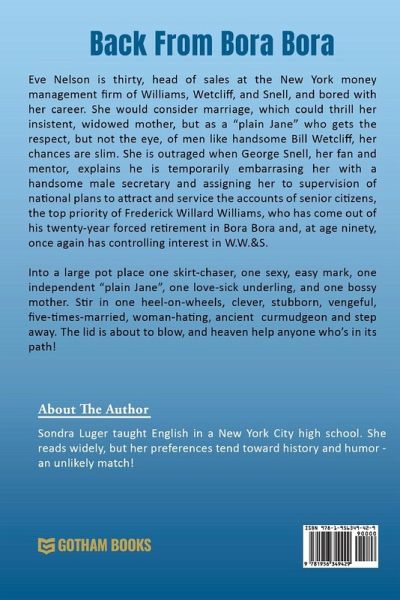 Eve Nelson is thirty, head of sales at the New York money management firm of Williams, Wetcliff, and Snell, and bored with her career. She would consider marriage, which could thrill her insistent, widowed mother, but as a 'plain Jane" who gets the respect, but not the eye, of men like handsome Bill Wetcliff, her chances are slim. She is outraged when George Snell, her fan and mentor, explains he is temporarily embarrassing her with a handsome male secretary and assigning her to supervision of national plans to attract and service the accounts of senior citizens, the top priority of Frederick Willard Williams, who has come out of his twenty-year forced retirement in Bora Bora and, at age ninety, once again has controlling interest in W.W.&S. Into a large pot place one skirt-chaser, one sexy, easy mark, one independent "plain Jane", one love-sick underling, and one bossy mother. Stir in one heel-on-wheels, clever, stubborn, vengeful, five-times-married, woman-hating, ancient curmudgeon and step away. The lid is about to blow, and heaven help anyone who's in its path!