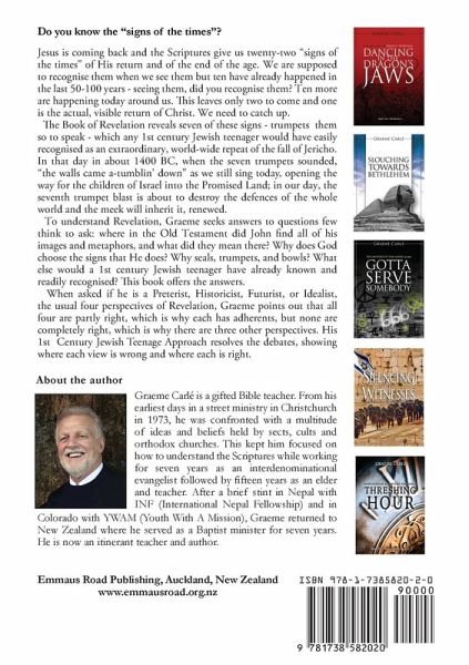 This is the sixth book in a series of seven with a breakthrough exegesis of the Book of Revelation. This book covers 22 "signs of the times" of Jesus' return and of the end of the age which we are supposed to recognise them when we see them. However, 10 have already happened in the last 50-100 years and 10 more are happening around us today. This leaves only two to come and one is the actual, visible return of Christ. We need to catch up. The Book of Revelation reveals seven of these signs - trumpets them so to speak - which any 1st century Jewish teenager would have easily recognised as an extraordinary, world-wide repeat of the fall of Jericho. In that day c. 1400 BC when the seven trumpets sounded, "the walls came a-tumblin' down" as we still sing today, opening the way for the children of Israel into the Promised Land; in our day, the seventh trumpet blast is about to destroy the defences of the whole world and the meek will inherit it, renewed. Graeme seeks answers to questions few think to ask: where in the Old Testament did John find all of his images and metaphors, and what did they mean there? Why does God choose the signs that He does? Why seals, trumpets, and bowls? What else would a 1st century Jewish teenager have already known and readily recognised? This book offers the answers.