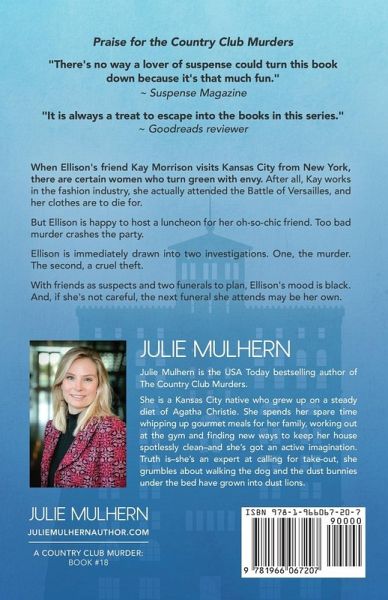 When Ellison's friend Kay Morrison visits Kansas City from New York, there are certain women who turn green with envy. After all, Kay works in the fashion industry, she actually attended the Battle of Versailles, and her clothes are to die for. But Ellison is happy to host a luncheon for her oh-so-chic friend. Too bad murder crashes the party. Ellison is immediately drawn into two investigations. One, the murder. The second, a cruel theft. With friends as suspects and two funerals to plan, Ellison's mood is black. And, if she's not careful, the next funeral she attends may be her own.