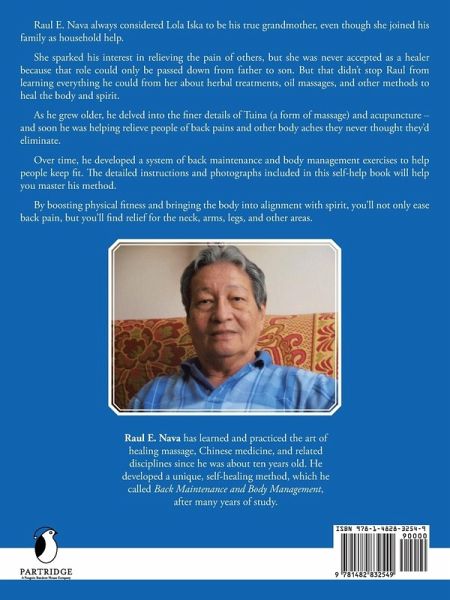 Raul E. Nava always considered Lola Iska to be his true grandmother, even though she joined his family as household help. She sparked his interest in relieving the pain of others, but she was never accepted as a healer because that role could only be passed down from father to son. But that didn't stop Raul from learning everything he could from her about herbal treatments, oil massages, and other methods to heal the body and spirit. As he grew older, he delved into the finer details of Tuina (a form of massage) and acupuncture - and soon he was helping relieve people of back pains and other body aches they never thought they'd eliminate. Over time, he developed a system of back maintenance and body management exercises to help people keep fit. The detailed instructions and photographs included in this self-help book will help you master his method. By boosting physical fitness and bringing the body into alignment with spirit, you'll not only ease back pain, but you'll find relief for the neck, arms, legs, and other areas.
