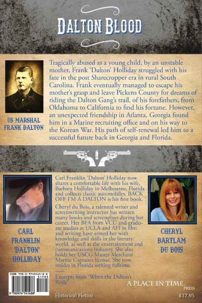 Tragically abused as a young child, by an unstable mother, Frank 'Dalton' Holliday struggled with his fate in the post Sharecropper era in rural South Carolina. Frank eventually managed to escape his mother's grasp and leave Pickens County for dreams of riding the Dalton Gang's trail, of his forefathers, from Oklahoma to California to find his fortune. However, an unexpected friendship in Atlanta, Georgia found him in a Marine recruiting office and on his way to the Korean War. His path of self-renewal led him to a successful future back in Georgia and Florida.