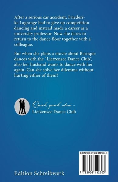 After a serious car accident, Friederike Lagrange had to give up competition dancing and instead made a career as a uni-versity professor. Now she dares to return to the dance floor together with a colleague. But when she plans a movie about Baroque dances with the "Lietzensee Dance Club", also her husband wants to dance with her again. Can she solve her dilemma without hurting either of them? Each novel in the series can be read as a standalone