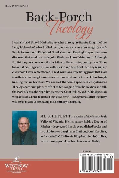 I was a hybrid United Methodist preacher among the Baptist Knights of the Long Table--that's what I called them, as they met every morning at Jasper's Porch Restaurant in Ridgeland, South Carolina. Theological questions were discussed that would've made John Wesley or John Calvin proud. Although Baptist, they welcomed me like the father of the returning prodigal son. Those breakfast meetings were more enthusiastic and beneficial than any seminary classroom I ever remembered. The discussions were living proof that God is with us even though sometimes we wander about in the fields like Joseph hunting for his brothers. We covered the whole spectrum of Systematic Theology over multiple cups of hot coffee, ranging from the creation and fall, the mark of Cain, the Nephilim giants, the Great Deluge, and the final passion week of Jesus Christ, to name a few. Back-Porch Theology reveals that theology was never meant to be shut up in a seminary classroom.