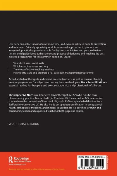 Critically appraising work from several approaches to produce an integrated, practical approach suitable for day-to-day clinicians and personal trainers, this essential guide looks at the science and practice of designing and teaching the best exercise programmes for low back pain.