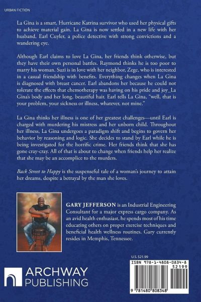 La Gina is a smart, Hurricane Katrina survivor who used her physical gifts to achieve material gain. La Gina is now settled in a new life with her husband, Earl Cuyler, a police detective with strong convictions and a wandering eye. Although Earl claims to love La Gina, her friends think otherwise, but they have their own personal battles. Raymond thinks he is too poor to marry his woman. Suzi is in love with her neighbor, Zege, who is interested in a casual friendship with benefits. Everything changes when La Gina is diagnosed with breast cancer. Earl abandons her because he could not tolerate the effects that chemotherapy was having on his pride and joy_La Gina’s body and her long, beautiful hair. Earl tells La Gina, "well, that is your problem, your sickness or illness, whatever, not mine." La Gina thinks her illness is one of her greatest challenges—until Earl is charged with murdering his mistress and her unborn child. Throughout her illness, La Gina undergoes a paradigm shift and begins to govern her behavior by reasoning and logic. She decides to stand by Earl while he is being investigated for the horrific crime. Her friends think that she has gone cray-cray. All of that is about to change when friends help her realize that she may be an accomplice to the murders. Back Street to Happy is the suspenseful tale of a woman’s journey to attain her dreams, despite a betrayal by the man she loves.