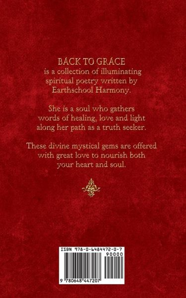 Back To Grace by Earthschool Harmony is a collection of 79 illuminating poems, celebrating the eternal spiritual truth within each heart. The author, Earthschool Harmony is a 3rd generation poet who has been influenced by the wisdom of great poets, sages, saints and mystics such as Rumi, Kabir, Hafiz, Lalla and Mirabai. She has gathered sacred words of healing, love and light along her path as a truth seeker, pilgrim, light worker and energy healer and has woven them into this stunning anthology. Earthschool Harmony lives on the pristine rural coastline near Byron Bay in Australia with her…mehr