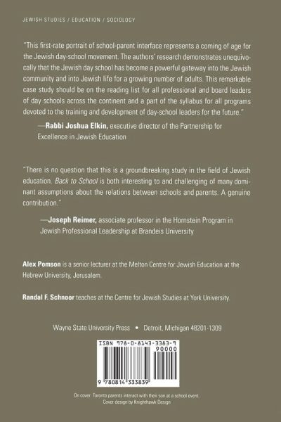 Beyond the walls of their synagogues, Jewish adults are creating religious meaning in new and diverse ways in a range of unconventional sites. In Back to School, authors Alex Pomson and Randal F. Schnoor argue that the Jewish day school serves as one such site by bringing adults and children together for education, meeting, study, and worship-like ceremonies. Pomson and Schnoor suggest that day school functions as a locus of Jewish identity akin to the Jewish streets or neighborhoods that existed in many major North American cities in the first half of the twentieth century. Back to School began as an ethnographic study of the Paul Penna Downtown Jewish Day School (DJDS) in Toronto, a private, religiously pluralistic day school that balances its Jewish curriculum with general studies. Drawing on a longitudinal study at DJDS, and against the backdrop of a comparative study of two other Toronto day schools as well as four day schools from the U.S. Midwest, Pomson and Schnoor argue that when parents choose Jewish schools for their children they look for institutions that satisfy not only their children's academic and emotional needs but also their own social and personal concerns as Jewish adults. The authors found an uncommon degree of involvement and engagement on the part of the parents, as genuine friendships and camaraderie blossomed between parents, faculty, and administrators. In addition, the authors discovered that parents who considered themselves secular Jews were introduced to or reacquainted with the depth and meaning of Jewish tradition and rituals through observing or taking part in school activities. Sitting on the cusp between the disciplines of education and the sociology of contemporary Jewish life, Back to School offers important policy implications for how Jewish day schools might begin to re-imagine their relationships with parents. Jewish parents, Jewish studies scholars, as well as researchers of educational and social trends will enjoy this evocative volume.
