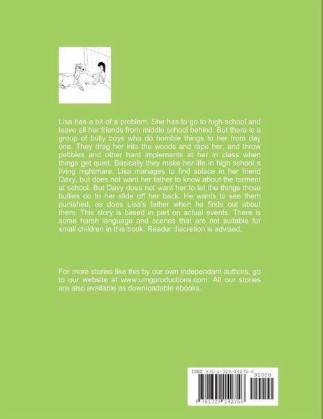 Lisa has a bit of a problem. She has to go to high school and leave all her friends from middle school behind. But there is a group of bully boys who do horrible things to her from day one. They drag her into the woods and rape her, and throw pebbles and other hard implements at her in class when things get quiet. Basically they make her life in high school a living nightmare. Lisa manages to find solace in her friend Davy, but does not want her father to know about the torment at school. But Davy does not want her to let the things those bullies do to her slide off her back. He wants to see them punished, as does Lisa's father when he finds out about them. This story is based in part on actual events. There is some harsh language and scenes that are not suitable for small children in this book. Reader discretion is advised.