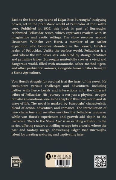 ""Back to the Stone Age"" is an enthralling adventure novel by Edgar Rice Burroughs, known for its imaginative storytelling and captivating narrative. Set in the lost world of Pellucidar, the story follows the protagonist, Tanar, as he embarks on a perilous journey through a primordial landscape filled with prehistoric creatures, ancient civilizations, and savage tribes. With the help of allies such as Stellara, a courageous maiden, and Ghak, a noble warrior, Tanar navigates the treacherous terrain and confronts formidable adversaries in his quest for survival and freedom. As they encounter breathtaking landscapes, fierce battles, and unexpected challenges, Tanar and his companions must rely on their wits, courage, and resourcefulness to overcome the dangers of this mysterious realm. ""Back to the Stone Age"" transports readers to a world of adventure and excitement, where the spirit of exploration and the triumph of the human spirit reign supreme.