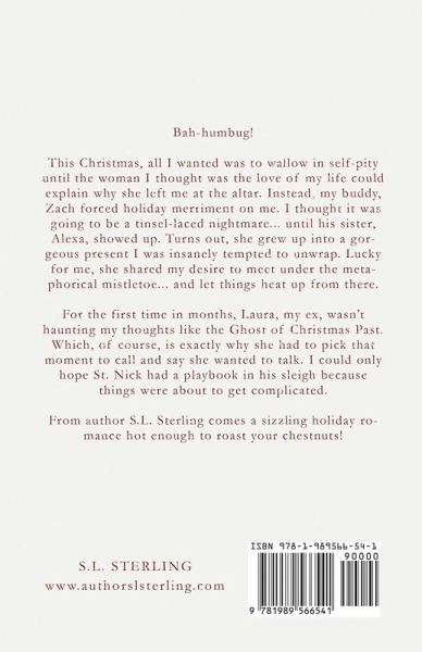 Bah-humbug! This Christmas, all I wanted was to wallow in self-pity until the woman I thought was the love of my life could explain why she left me at the altar. Instead, my buddy, Zach forced holiday merriment on me. I thought it was going to be a tinsel-laced nightmare... until his sister, Alexa, showed up. Turns out, she grew up into a gorgeous present I was insanely tempted to unwrap. Lucky for me, she shared my desire to meet under the metaphorical mistletoe... and let things heat up from there. For the first time in months, Laura, my ex, wasn't haunting my thoughts like the Ghost of Christmas Past. Which, of course, is exactly why she had to pick that moment to call and say she wanted to talk. I could only hope St. Nick had a playbook in his sleigh because things were about to get complicated. From author S.L. Sterling comes a sizzling holiday romance hot enough to roast your chestnuts!