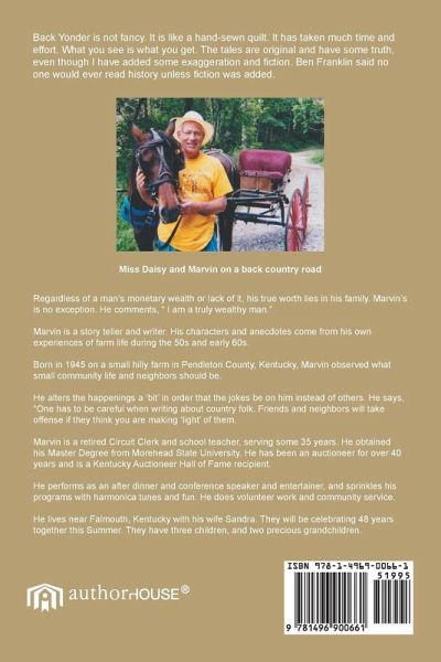 Back Yonder is not fancy. It is like a hand-sewn quilt. It has taken much time and effort. What you see is what you get. The tales are original and have some truth, even though I have added some exaggeration and fiction. Ben Franklin said no one would ever read history unless fiction was added.