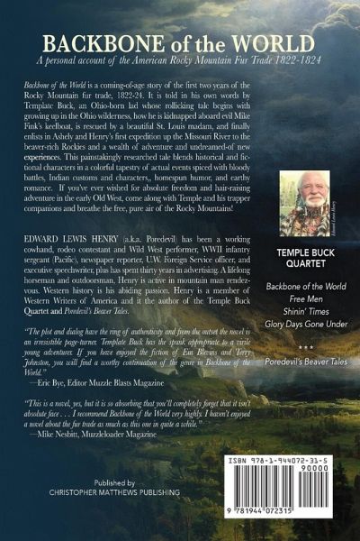 The first book in an exciting adventure series "The Temple Buck Quartet" that chronicles the rise and fall of the American Rocky Mountain fur trade. This volume is a coming-of-age story set in the first two years of the fur trade, 1822-24.Temple Buck is a young man whose rollicking tale begins with growing up in the Ohio wilderness before he is kidnapped by an evil keelboat captain. After his rescue by a beautiful St. Louis madam, he finally enlists in the first expedition up the Missouri River to the beaver-rich Rockies for a wealth of adventure and new experiences. This painstakingly researched tale blends historical and fictional characters into a colorful tapestry of actual events spiced with bloody battles, Indian customs, homespun humor, and earthy romance.